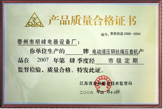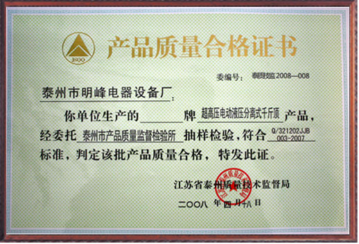 本單位生產的產品通過質量監督局檢驗合格并頒發了合格證書。(點擊可放大)